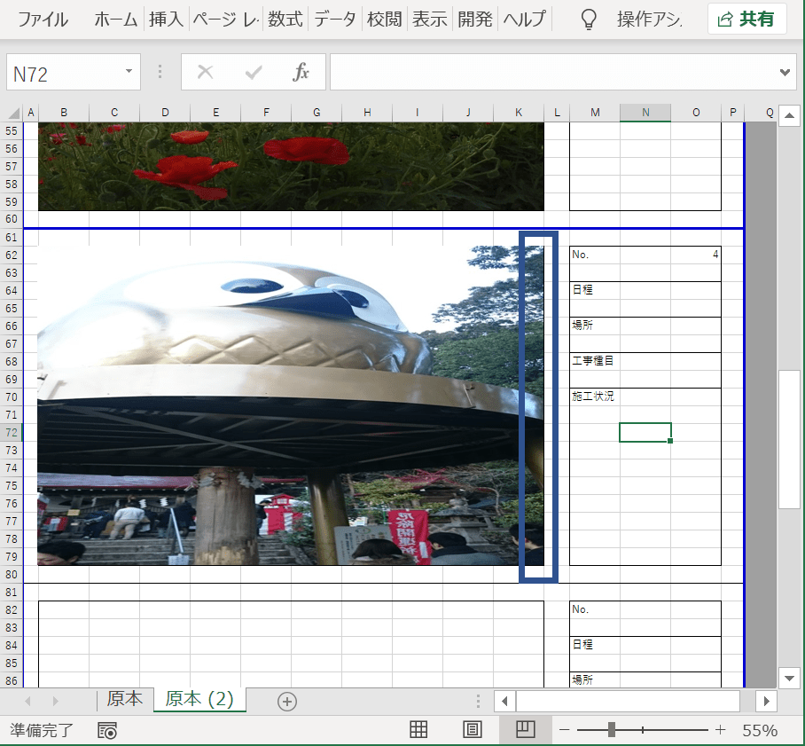 貼り付ける写真を間違えても追加したシートを削除する事で作り直しが容易にしています。