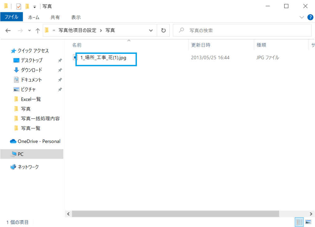 写真の一括貼り付けを行う時に写真の貼り付けたい順番とファイル名を決めます。
