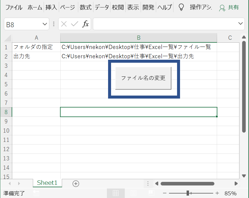 今回はVBA上からファイル名のコピーをしてファイル名を変更して貼り付けを行いました。