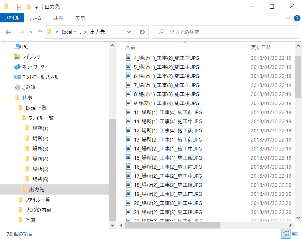 そこでVBAが正常に動くか確認を行うため、テストファイルを作成するのに50枚の写真のファイル名を変更致しました。