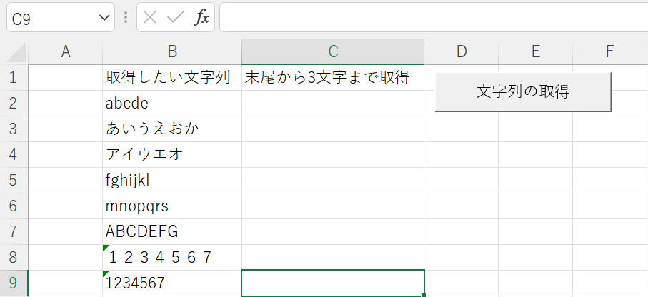 Right関数は文字列を末尾から指定した文字数分だけ取得する関数です。