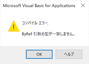 この様にByValとByRefでエラーの内容が変わりますので注意して下さい。