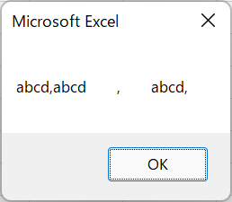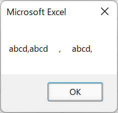 MsgBox Trim(moji) & "," & LTrim(moji) & "," & RTrim(moji) & ","