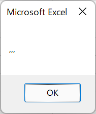 変数mojiに何も設定されていないため、Trimの間に設定している”,”しか表示されていません。