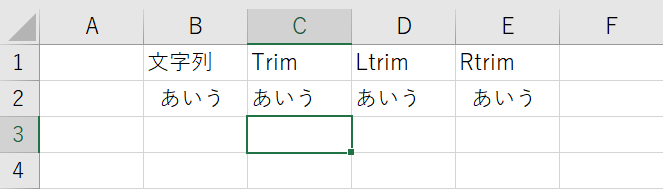 Trimでは先頭と末尾の空白、LTrimでは先頭の空白、RTrimでは末尾の空白が削除されました。