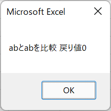 MsgBox "abとabを比較 戻り値" & StrComp("ab", "ab")