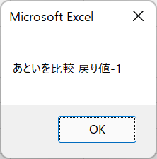MsgBox "あといを比較 戻り値" & StrComp("あ", "い")